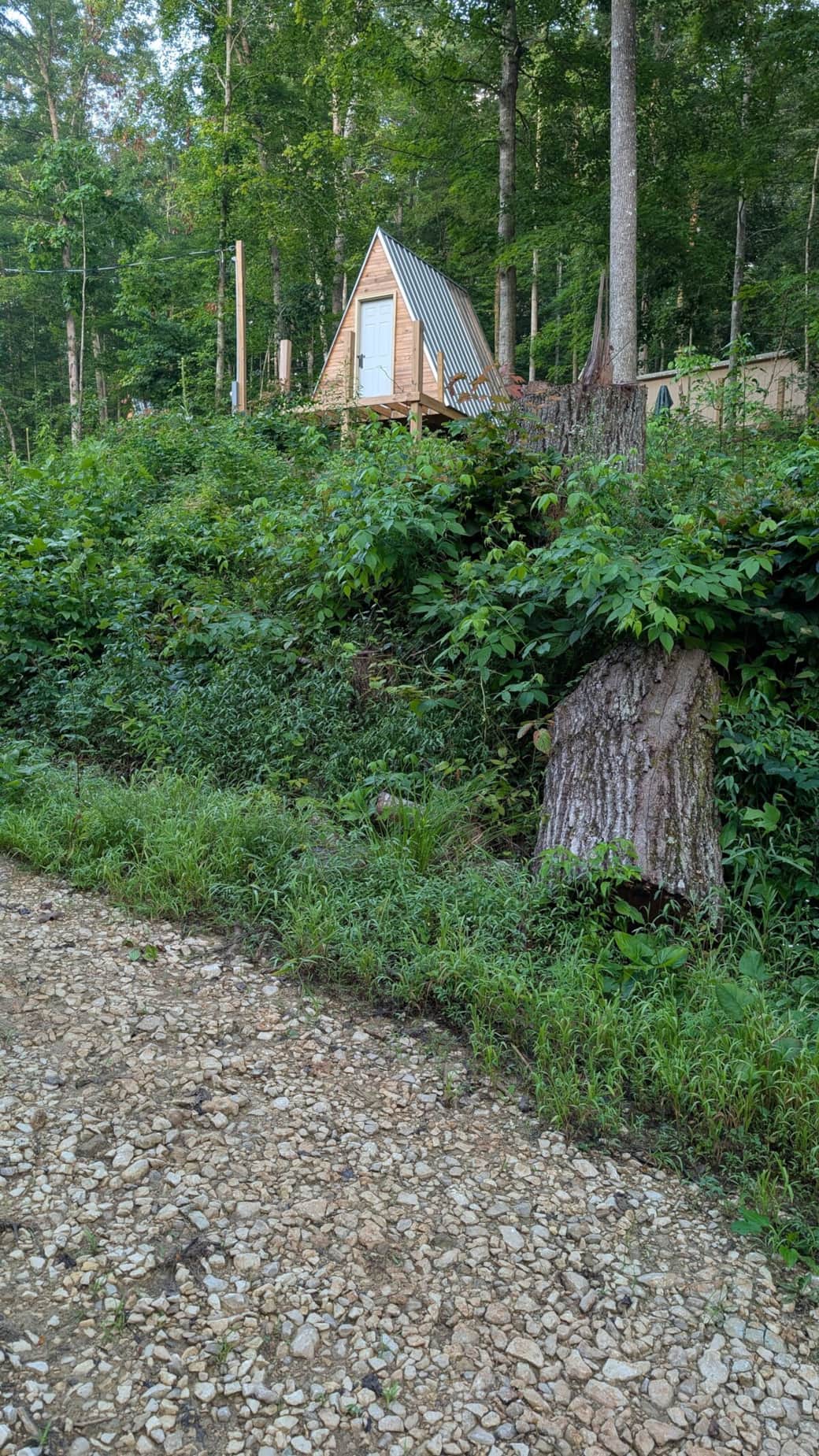Clearing & leveling the parking area of the top of the property.